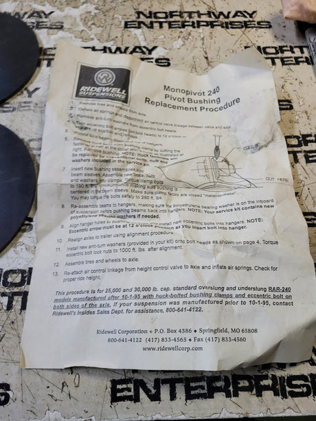 Ridewell 6040028 339-273 Rid 6040028 Pivot Serv Kt BUSHING KIT