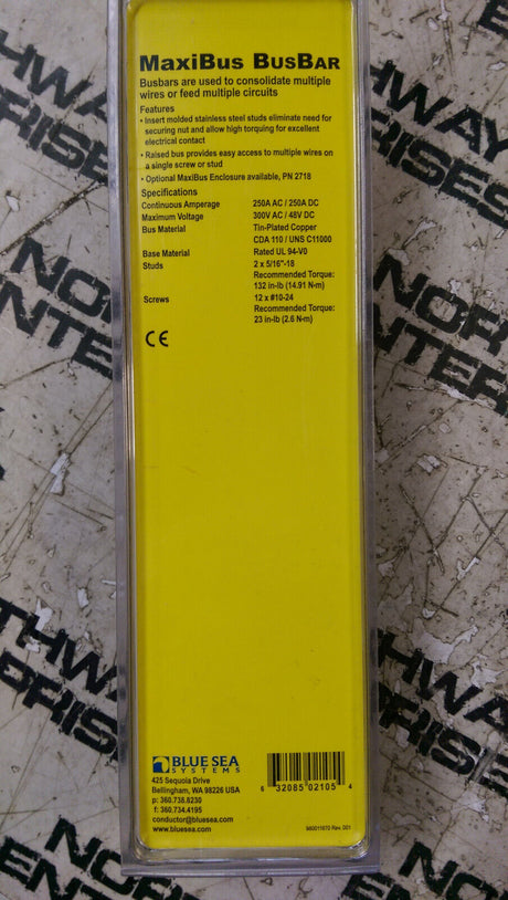 Blue Sea 2105 MaxiBus 250A BusBar Two 5/16"-18 Studs and Twelve #10-24 Screws